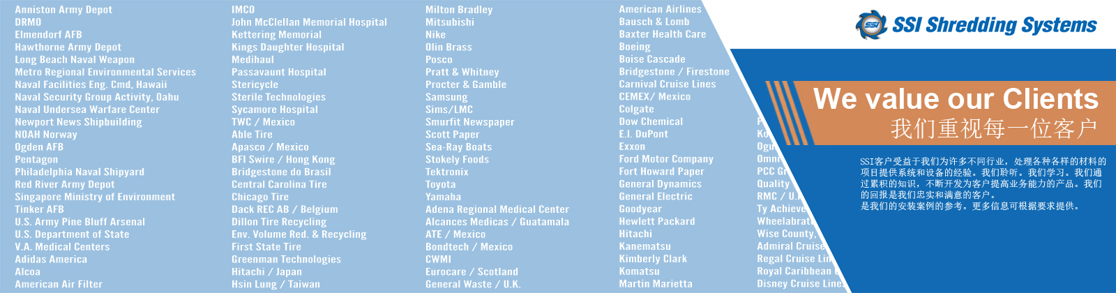 SSI的商業(yè)宗旨為:“不斷革新和發(fā)展破碎處理技術(shù),以適應(yīng)世界環(huán)境和世界經(jīng)濟(jì)的變化和需求”。